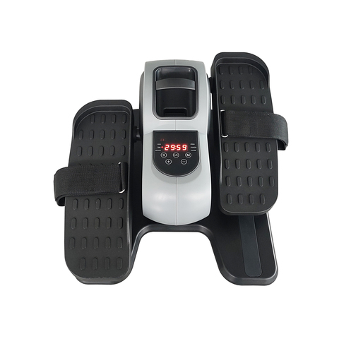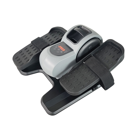 جهاز بيضاوي الشكل تحت المكتب ، جهاز تمرين بيضاوي الساق كهربائي كما يظهر على التلفزيون لكبار السن بجهاز تحكم عن بعد ، مجمّع بالكامل